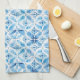 Boho Blue White Floral Abstract Tea Towel