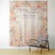"Boho Blush Floral Pampas Grass Rustic Wood Wedding Tapestry Photo Backdrop." Soft peach watercolor wash with blush pink, butter yellow and pale soft white roses are paired with pampas grass, ferns and eucalyptus foliage greenery for a stunning photo backdrop for your wedding guests. Created from hand painted watercolor artwork by internationally known and licensed artist, Audrey Jeanne Roberts, copyright.