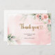 Boho blush pink floral green eucalyptus gold oval baby shower thank you card