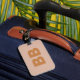Spot your travel bag with this bold and colorful luggage tag, You can change the color of the background by clicking on the customize it button.