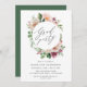 Invite guests to your graduation party with our Boho Blush Pink Spring Watercolor Floral graduation party invitations. The floral graduation party invitation features "Grad party" in an elegant script encircled by a frame of blush, pink, and purple watercolor flowers complimented by green foliage with your party details below. The invite reverses to a solid dark green background. The Boho graduation party invitation is perfect for both high school and college graduation parties.