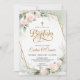 Boho blush roses eucalyptus gold frame Baptism Invitation