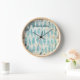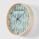 Boho Bohemian Distressed Teal Feather Pattern Wall Clock