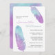 Boho Bohemian Feather Purple Baby Shower Watercolor Invitation.