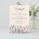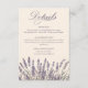 This elegant simple floral monogrammed wedding details card features a delicate lavender flowers drawing with warm background. Personalise this beautiful wedding details card with your own text and QR code.