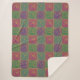 When I was looking for Sherpa blankets, I couldn’t find colors and prints that I liked. So I decided to create my own. I used a bright color palette of fuschia, blue green, green and purple on a mustard yellow background. I hand drew spirals in a square design to keep it loose and informal. I love the combination of rich colors on a warm, cozy Sherpa blanket. Perfect for snuggling.