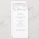 This delicate botanical wedding program design features shades of coral, peach, grey and blue grey, and has plenty of leaves, flowers, and accents.