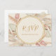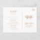 This boho botanical | ivory menu choice RSVP postcard is perfect for your elegant rustic floral, green, peach, rose gold wedding. Design features a gold frame or bouquet with modern blush pink pampas grass, simple sage, ivory, champagne palm leaf, and classic beach greenery. The flowers may include pink rose and orchid. The design is ideal for a classy vintage terracotta, beige, rust, winter, spring, fall wedding. Please find other matching or coordinating wedding stationery in the rest of the collection suite.