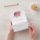 These watercolor wedding invitations feature a modern boho floral design with protea flowers, eucalyptus, wildflowers and foliage. Personalise them with your text. Matching products available.