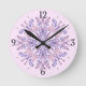 Boho Botanical Purple Fantasy Flower Mandala Round Clock