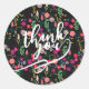 Boho Botanical Watercolor Flowers Black Classic Round Sticker