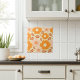 A boho botanical ceramic tile featuring an exotic watercolor orange floral pattern with tropical and nature-inspired details, blending cottagecore, retro, and vintage style for an earthy look perfect for fall, autumn, spring, summer, or winter decor.
