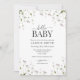 Create your own personalised baby shower invitation featuring modern minimalist design featuring boho style botanical floral accents.