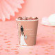 Celebrate in style with this elegant boho bridal shower paper cups! Featuring a graceful curtain of pearls and a breathtaking boho bride with in a delicate lace wedding dress, this design is beautifully adorned with a lush bouquet of roses, pampas grass, eucalyptus, and ranunculus.