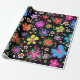Boho Bright Flowers on Black Any Occasion Wrapping Paper