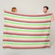 Cute whimsical boho blanket with pink, mauve, brown, burgundy and sage green polka dots and stripes pattern. Earthy warm colours.