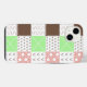 Cute whimsical boho phone case with pink, mauve, brown, burgundy and sage green polka dots and stripes pattern. Earthy warm colours.