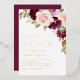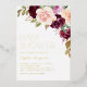 Invite guests to your event with this customisable gold foil baby shower invitation. It features watercolor floral bouquet of burgundy, purple. red and peach flowers and eucalyptus leaves. Personalise this fall floral baby shower invitation by adding the celebrant's name, time, date, and other event details. This boho baby shower invitation is available in other foil colours.