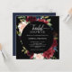 Boho Bridal shower invitation features elegant burgundy and navy blue flowers on a geometric frame.