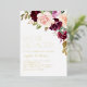 Invite guests with this customisable gold foil engagement party invitation. It features watercolor floral bouquet of burgundy, purple. red and peach flowers and eucalyptus leaves. Personalise this fall floral engagement party invitation by adding the celebrant's name, time, date, and other event details. This boho engagement party invitation is perfect for autumn or fall engagement parties.