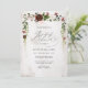 Invite your bridal shower guests in style with this custom rustic boho floral bridal shower invitation featuring a frame of hand painted burgundy, blush pink and white watercolor roses with greenery. Personalise all of your shower details in black typography. The back of the card has a matching champagne and tan watercolor texture. Designed by Susan Coffey.