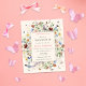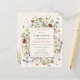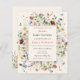 This is a budget friendly boho butterfly and floral baby shower invitation. The design features sweet and whimsical butterflies and bees around a halo of summery delicate wildflower florals in pretty shades of blue, terracotta, pink, rust, purple and yellow.