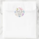 This design features delicate dancing hand painted colourful butterflies with a lovely combination of classic and rustic fonts. Stick these round stickers to your favourite baby shower favours.