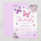Boho Butterfly girl Baby Shower Purple Floral Pink Invitation