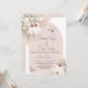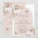 Butterflies themed baby shower invitation for a little girl featuring a blush colored arch, lovely boho floral arrangements with pampas grass and some watercolor butterflies. This sweet baby shower invitation is ideal for a butterfly themed baby shower.