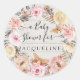 Boho Butterfly Pink White Wood Floral Wreath Baby Classic Round Sticker