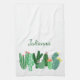 Boho Cactus Painting in Green Personalised Name Tea Towel