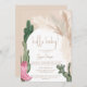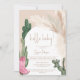 Hello Baby! Celebrate the upcoming arrival with this beautifully designed boho baby shower invitation, featuring soft pampas grass, green cacti, and a playful pink cowboy boot. The neutral tones paired with the western flair create a charming and stylish invite perfect for a desert-themed baby shower. Personalise the details for a unique and memorable event that blends rustic elegance with a touch of whimsy.