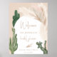 Set the tone for your celebration with this earthy boho bridal shower welcome sign, featuring soft pampas grass and hand-painted cacti in soothing greens and neutrals. The modern layout blends a minimalist arch with desert botanicals, ideal for a backyard gathering, southwestern theme, or neutral-toned party.