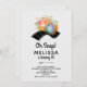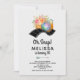 A birthday invitation with a photography theme. Text Says Oh Snap! With your personalised party details. Designed with a watercolor illustration of an orange camera with a floral bouquet and a black and white wavy film strip.