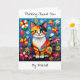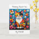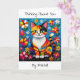 A cute cat pun filled thinking of you card. A cute colorful boho cat sitting in flowers and surrounded by butterflies. The art is in an impasto oil paper quilling style.