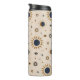This custom thermal tumbler features all-over-print boho celestial astronomy design. Holds 12 oz with stainless steel body and plastic lid with sturdy flip top. Vacuum-sealed double walled construction retains temperature. Fits most standard cup holders. Hand washing recommended.