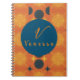 Boho Celestial Sun Moon Orange Monogram Script Notebook