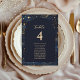 Help your guests find their place under the stars with this boho celestial wedding seating chart. Featuring a deep navy night sky, golden stars, elegant script, and modern typography, this double-sided card combines a table number with a personalised guest list. Perfect for starry night, celestial, and boho weddings, bringing beauty and organisation to your special night.