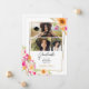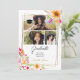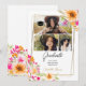 Celebrate her big moment with this light and joyful graduation announcement featuring three personal photos framed in hand-painted watercolor florals. Warm gold lines and vibrant blush, peach, and tangerine flowers add a feminine, modern touch. A soft blend of playful and elegant, this design is perfect for sharing proud news with loved ones. Ideal for high school or college grads looking for something stylish yet heartfelt. You can easily update the name, class year, and school information for a fully tailored look.