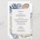 Add a touch of coastal charm to your reception with these ethereal soft blue and neutral beach wedding menu sheets. Featuring watercolor hand-painted shells and corals, these double-sided budget paper menus are perfect for oceanfront, beachfront, beachside, resort, and destination weddings.