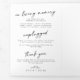 Personalise your wedding program with your initials, names, wedding date and location, your favourite quote or lyric, order of service, wedding party, in loving memory memorial message, unplugged ceremony message, a thank you note and a photo.