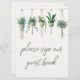 Introducing our exclusive guestbook sign, a stunning blend of sophistication and nature-inspired elegance. This sign features a delicate watercolor illustration of a hanging plant, artfully suspended in a chic macramé hanger. The hand-drawn design exudes a sense of breezy sophistication, making it the perfect addition to any modern, stylish event. The soft green hues of the plant, paired with the refined typography, create an effortlessly chic aesthetic that is both timeless and contemporary.