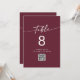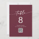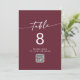 These boho chic burgundy red QR code table numbers are perfect for a minimalist wedding. The dark maroon wine red modern bohemian design features simple rustic calligraphy with a unique yet classic style.