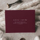 This boho chic burgundy red self-addressed rsvp envelope is perfect for a minimalist wedding suite. The dark maroon wine red modern bohemian design features simple rustic calligraphy with a unique yet classic style.