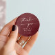Boho Chic Burgundy Red Thank You Wedding Favour Classic Round Sticker
