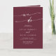 This boho chic burgundy red we do folded wedding program is perfect for a minimalist wedding ceremony. The dark maroon wine red modern bohemian design features simple rustic calligraphy with a unique yet classic style.