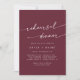 This boho chic burgundy red wedding rehearsal dinner invitation is perfect for a minimalist night before wedding rehearsal. The dark maroon wine red modern bohemian design features simple rustic calligraphy with a unique yet classic style.