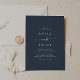 This boho chic dark navy blue casual wedding invitation is perfect for a minimalist wedding. The muted and moody neutral dark blue modern bohemian design features simple rustic calligraphy with a unique yet classic style.