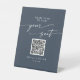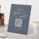Boho Chic Dark Navy Blue Seating Chart QR Code Pedestal Sign