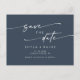 This boho chic dark navy blue wedding save the date invitation postcard is perfect for a minimalist wedding. The muted and moody neutral dark blue modern bohemian design features simple rustic calligraphy with a unique yet classic style.